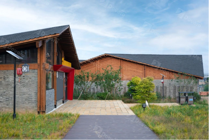 項(xiàng)目中的芳華小院、黨群服務(wù)中心、劉寅紀(jì)念館為全木結(jié)構(gòu)建筑,采用了幻影波形瀝青瓦,達(dá)到整體風(fēng)格造型的統(tǒng)一。