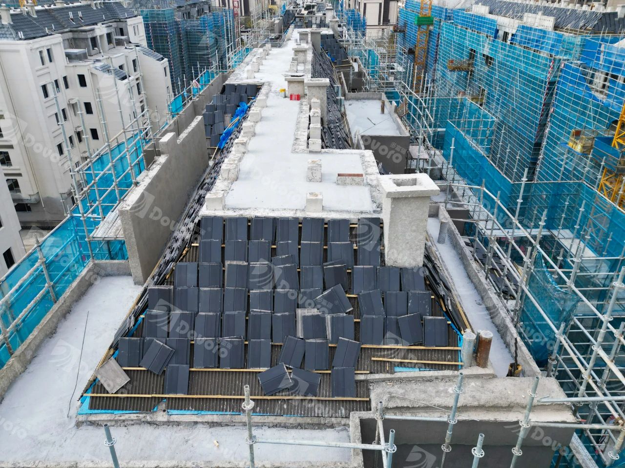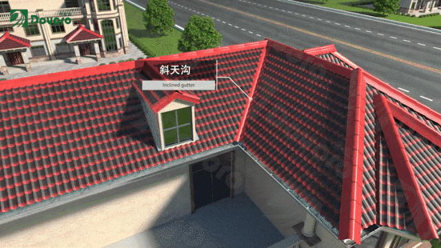 多富瑞精心設(shè)計(jì)了不同位置的節(jié)點(diǎn)處理方式,如屋脊、天溝、煙囪等位置,使用防水卷材或通風(fēng)卷材輔助防水。無(wú)需像傳統(tǒng)坡屋面需要大量使用防水卷材,僅在部分位置加強(qiáng)防水性,使不同角度瓦材之間也可以嚴(yán)絲合縫。