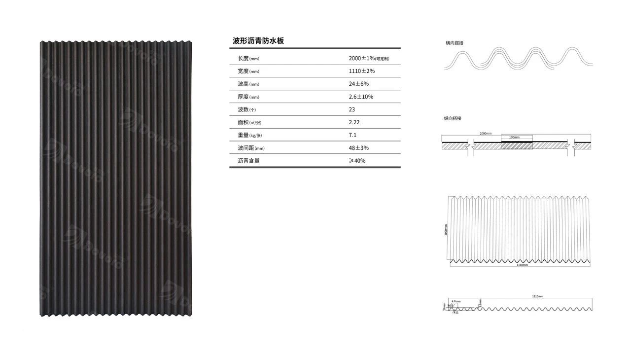 作為屋面防水的第二道屏障,波形瀝青防水板采用防排結合的設計,擁有更加陡峭的波峰,雨水排出速度更快,在遇到極端暴雨的情況下,即使有部分雨水來不及排出屋面,從上層瓦材滲入下方,也可以通過波形瀝青防水板繼續(xù)排出屋面。兩層屋面、雙重防水,避免形成積水產生漏水。