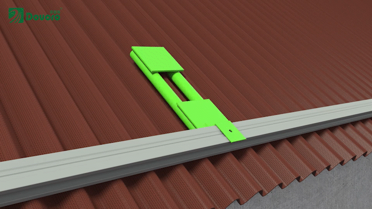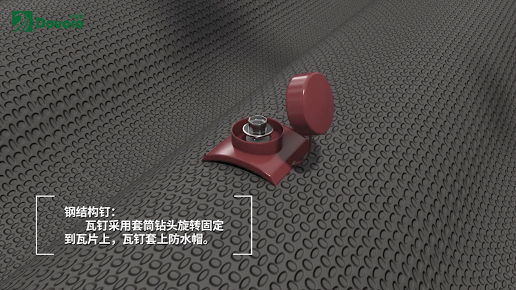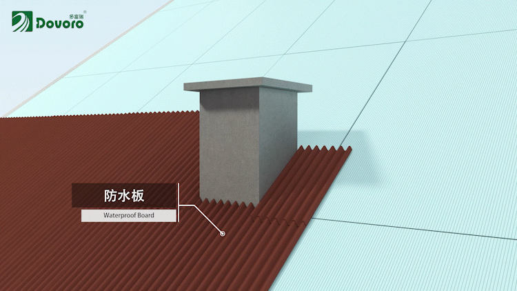 同時(shí),在固定防水板和屋面瓦時(shí)需要使用瓦釘,瓦釘統(tǒng)一固定在膠條的位置,膠條緊貼瓦釘,保證了釘孔處沒有雨水滲漏。