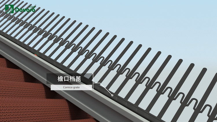 在檐口的位置,防水板和屋面瓦之間,安裝檐口擋篦。即杜絕了鳥類進(jìn)入,還保證了上下層之間有良好的通風(fēng)效果,利于帶走潮濕的空氣。